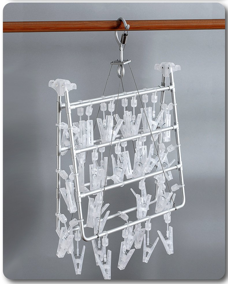 多数クリップ付き靴下干しラック使用例